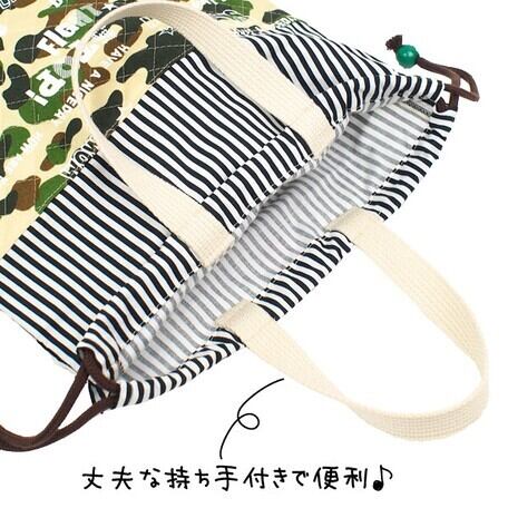 持ち手付きキルティング巾着 POPカモベージュ