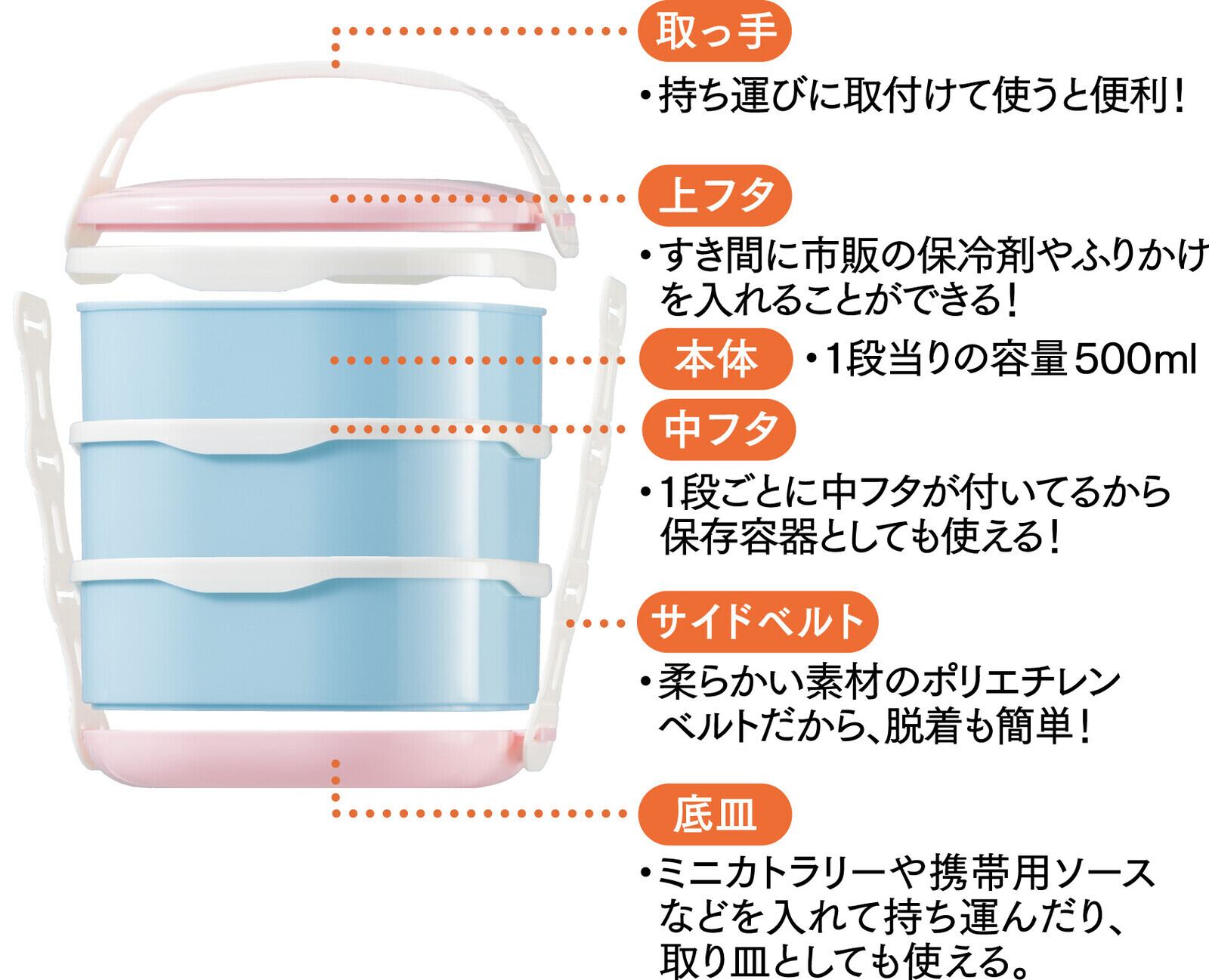 素材:材質:本体・上フタ・底皿/ポリプロピレン・中フタ・ベルト/ポリエチレン